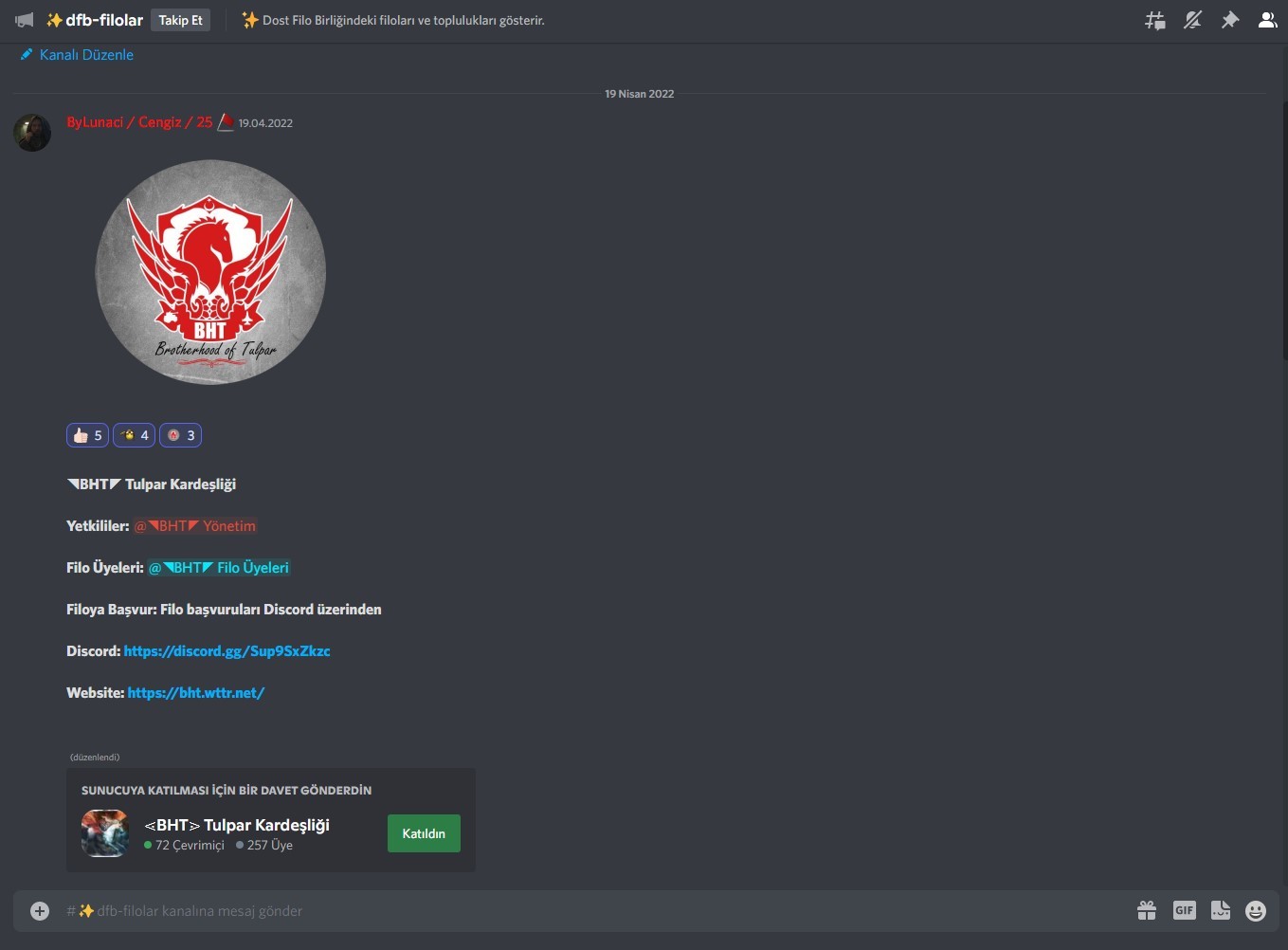 Filo açıklamalarında ve Discord sunucularında örnekteki gibi birbirimizden de bahsetmekteyiz.