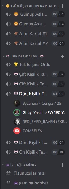Discord sunucumuzda etkinlik yapmak isteyenleri takım odalarına bekleriz, tek başına yapmaktansa takımca daha kolay yapılmaktadır.