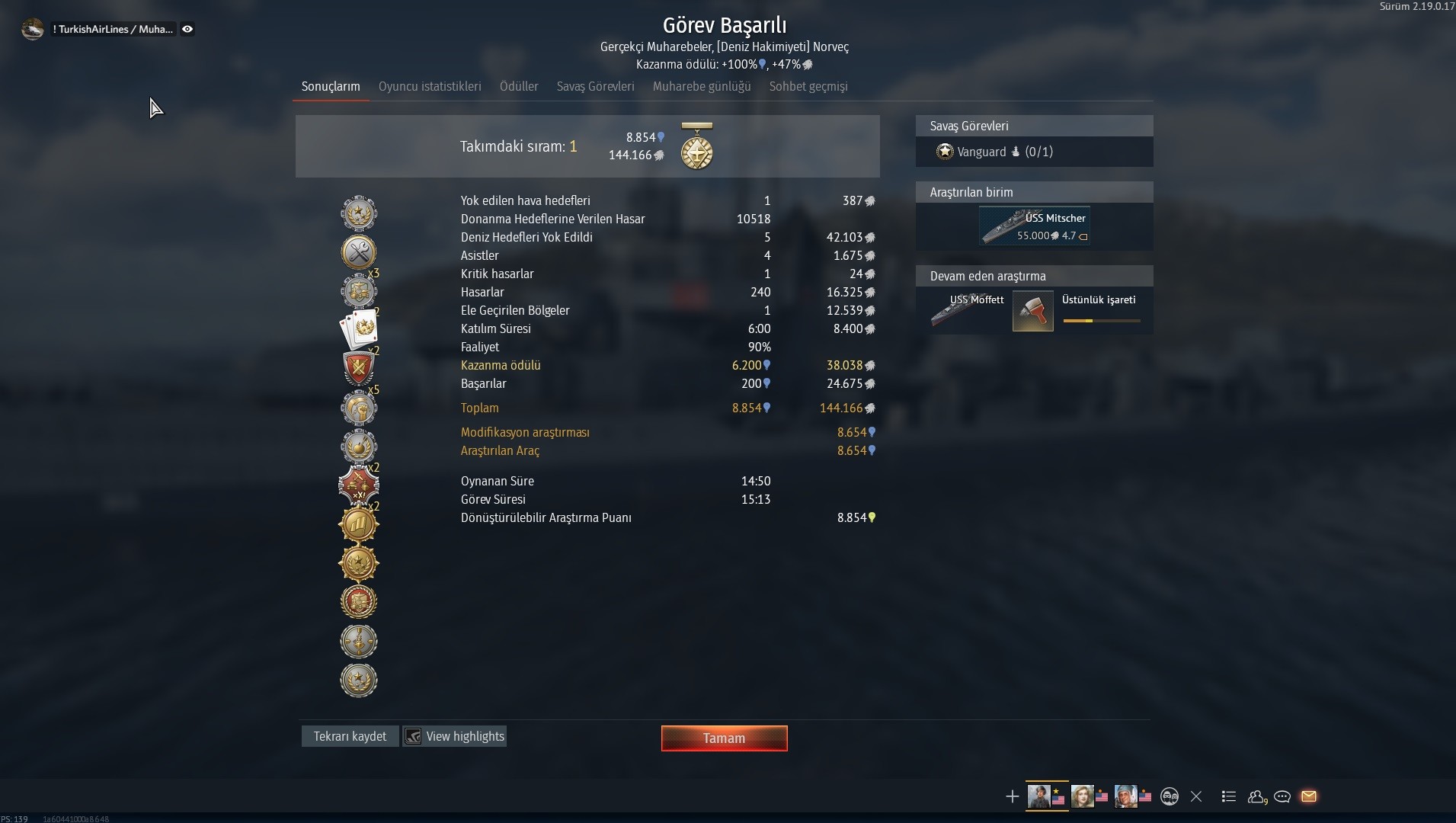Premium hesap + Premium gemi Moffett ve sonuç 🙂