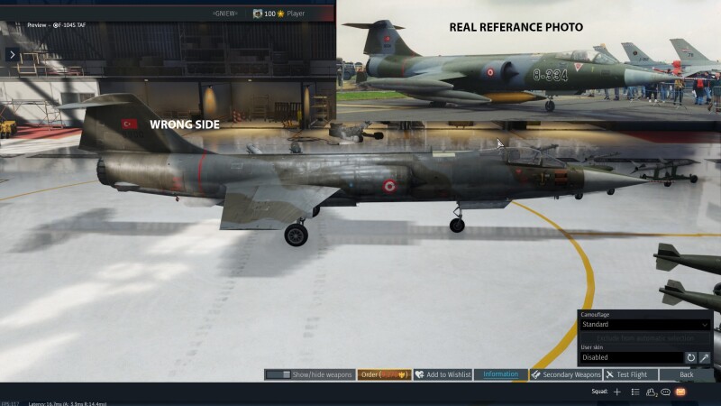 Oyundaki F-104 TAF uçağında yer alan Türk bayrağı hatalıdır. Uçağın sol tarafında bayrak doğru şekilde görünürken, sağ tarafında ters olarak yer almaktadır.